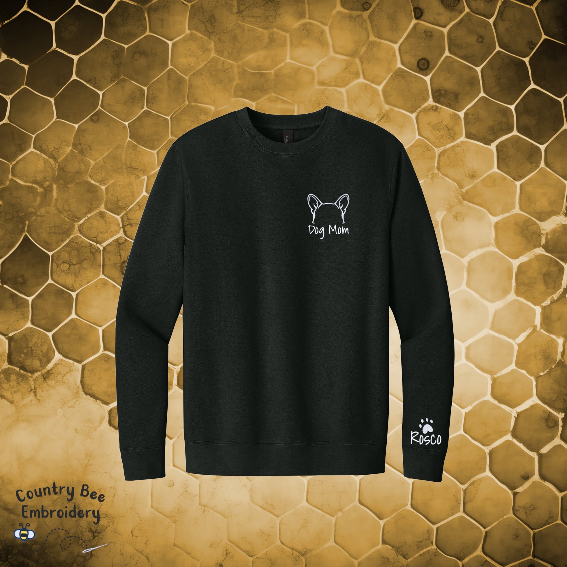 Show off your love of your fur baby with this cozy, custom embroidered sweatshirt featuring adorable dog ears over your heart and your pup's name on the sleeve! Select your pooch from the list of 20 different designs and we'll create a one-of-a-kind sweatshirt representing your pup. Whether you're a proud Golden Retriever owner, a French Bulldog Fan or a Dachshund devotee, this sweatshirt is the perfect way to celebrate your four-legged companion.