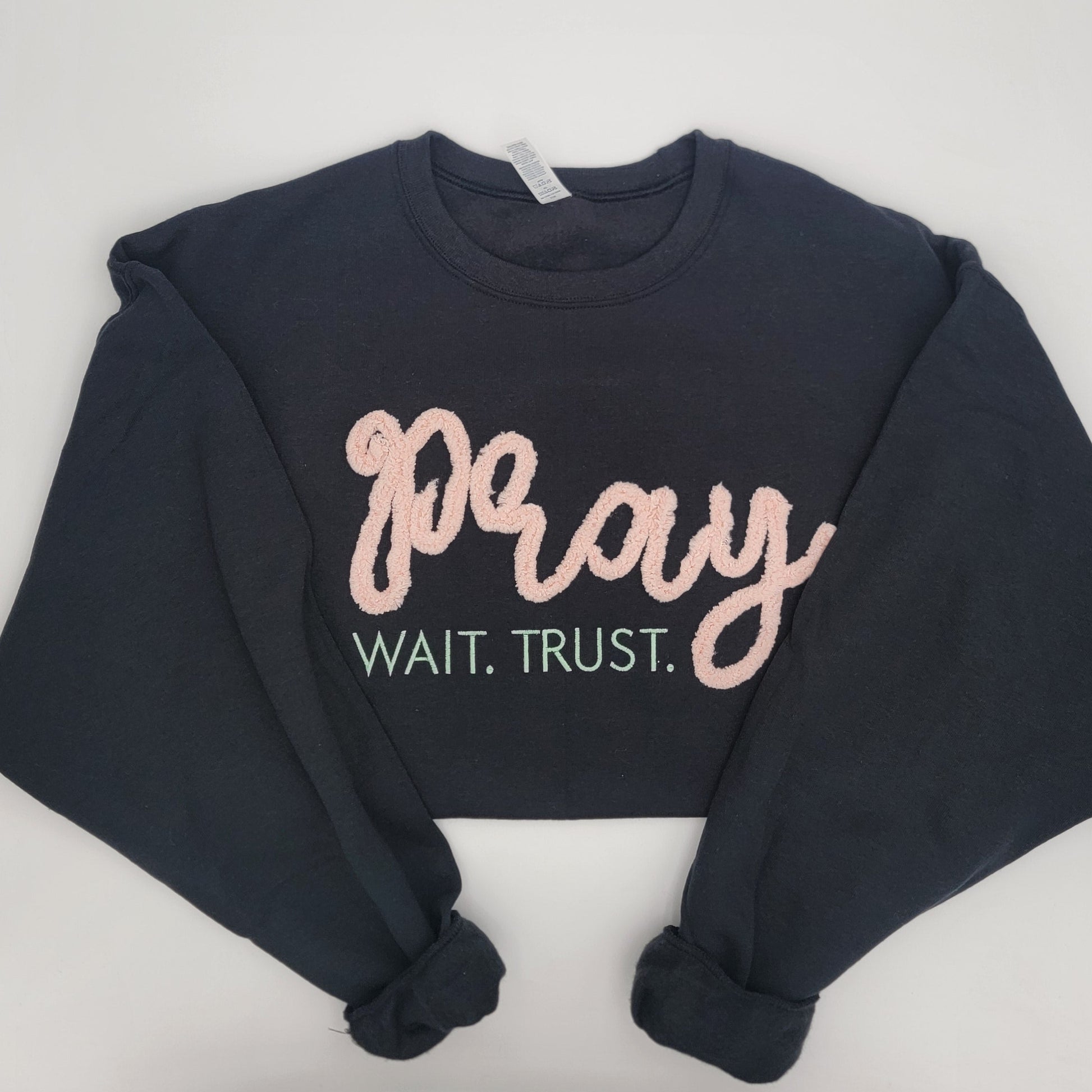 Pray Wait Trust Chenille Yarn Embroidered Sweatshirt